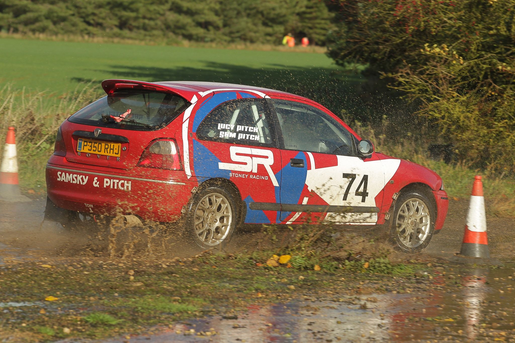 There was a lot of surface water in places, left from the previous days heavy rain. It proved challenging, especially for those in rear wheel drive cars. We did have a couple of incidents, the first resulting in the removal of a wing mirror, when we became a little too close to a metal sign. Shortly after, on a fast approach to a left turn, we aquaplaned head on into a hedge. Luckily, we managed to reverse out without damage and carry on. We finished the stage 10th in class with our usual smiles, despite Sam chewing my ear about the wing mirror!